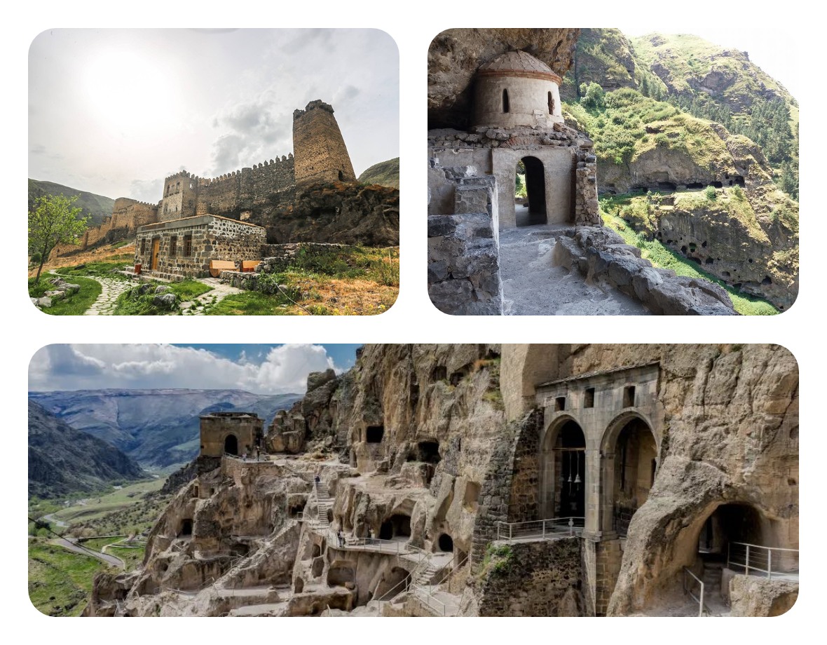 After breakfast in the hotel, we visit the resort Borjomi. Borjomi is famous for its mineral water industry (which is the number one export of Georgia). You will be able to taste mineral water in Borjomi Park. Then we go to Akhaltsikhe where you will visit the fortress of Rabat. Rabati Castle is a medieval structure in Akhaltsikhe, Georgia, which dates back to the 13th century. The castle complex covers a mosque, a minaret, a synagogue, a Christian church, a palace, a citadel, landscaped gardens, vineyards on terraces, outdoor pools with fountains, a history museum, a hotel, a restaurant, souvenir, and wine shops.