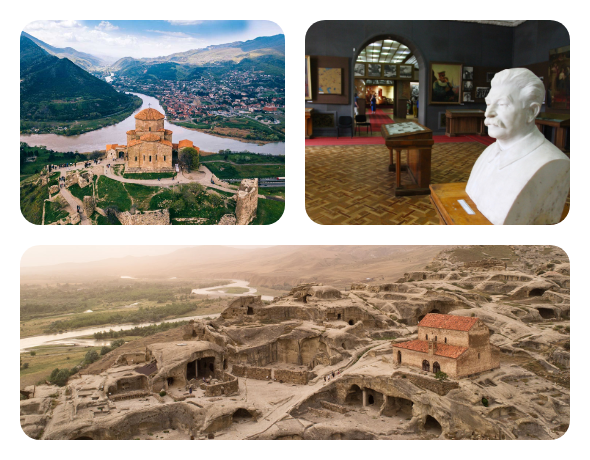 After breakfast in the hotel, we visit the ancient capital – Mtskheta, and see its historical sites: Jvari monastery (6th century) and Svetitskhoveli cathedral (11th century). Both are UNESCO World Heritage sites. Then we visit Gori. Explore Joseph Stalin museum featuring the original house where he was born, and his private armored train carriage. Continue to Uplistsikhe (“Fortress of God”). Uplistsikhe is located on the left bank of Mtkvari River and is notable for its unique combination of various styles of rock-cut cultures and the co-existence of pagan and Christian architecture. Arrive in Tbilisi. Overnight at the hotel.