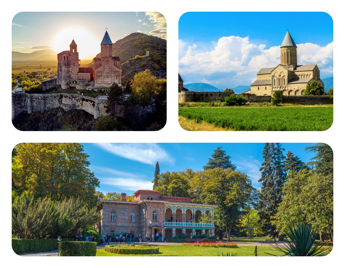 საუზმის შემდეგ ვეწვევით ალავერდს, სადაც ვნახავთ საქართველოს ერთ-ერთ უდიდეს ალავერდის საკათედრო ტაძარს XI ს. შემდეგ ვეწვევით გრემის მთავარანგელოზთა ეკლესიას, რომელიც აშენდა მე-16 საუკუნეში. გრემის შემდეგ გავემგზავრებით წინანდალში, საქართველოს ჰერცოგების რეზიდენციაში, ულამაზესი ინგლისური ბაღით, მუზეუმით და ღვინის მარანით, რომელიც მე-19 საუკუნის საზოგადო მოღვაწესა და პოეტს, ალექსანდრე ჭავჭავაძეს ეკუთვნოდა. ამის შემდეგ გავემგზავრებით თბილისში, გზად მოვინახულებთ III საუკუნეში აშენებულ უძველეს უჯარმის ციხეს, რომელიც VII საუკუნემდე იყო ამ ტერიტორიის მნიშვნელოვანი სავაჭრო და ადმინისტრაციული ცენტრი, სანამ არაბები შემოიჭრნენ. მდინარე ივრის ნაპირზე, ბორცვზე მდებარე უჯარმა ტყეებითაა გარშემორტყმული. უჯარმის მონახულების შემდეგ გომბორის უღელტეხილზე გადავდივართ და თბილისში ვბრუნდებით.
